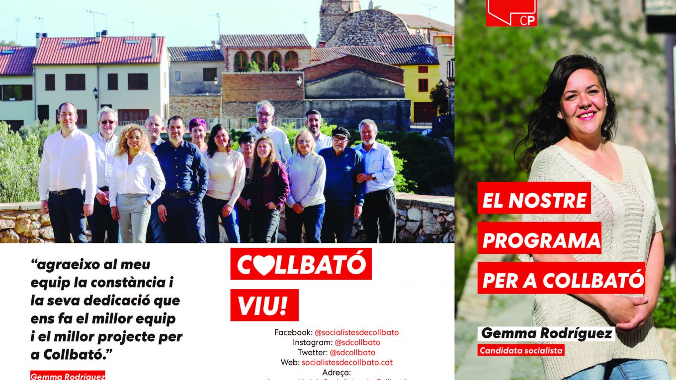 Els i les socialistes tenim un projecte de país i tenim un projecte pel nostre poble de Collbató. Ho hem demostrat des de 1979, treballant per un Collbató sostenible econòmicament, cohesionat, emprenedor, igualitària, participatiu, respectuós amb el medi ambient i compromès amb tots i totes, aconseguint que ser Collbató fos “Una forma de Viure”.